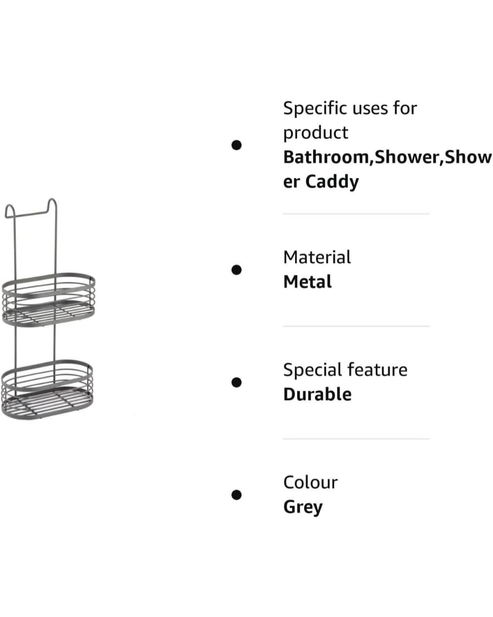 - Durable wire construction with large baskets to store all your shower essentials.