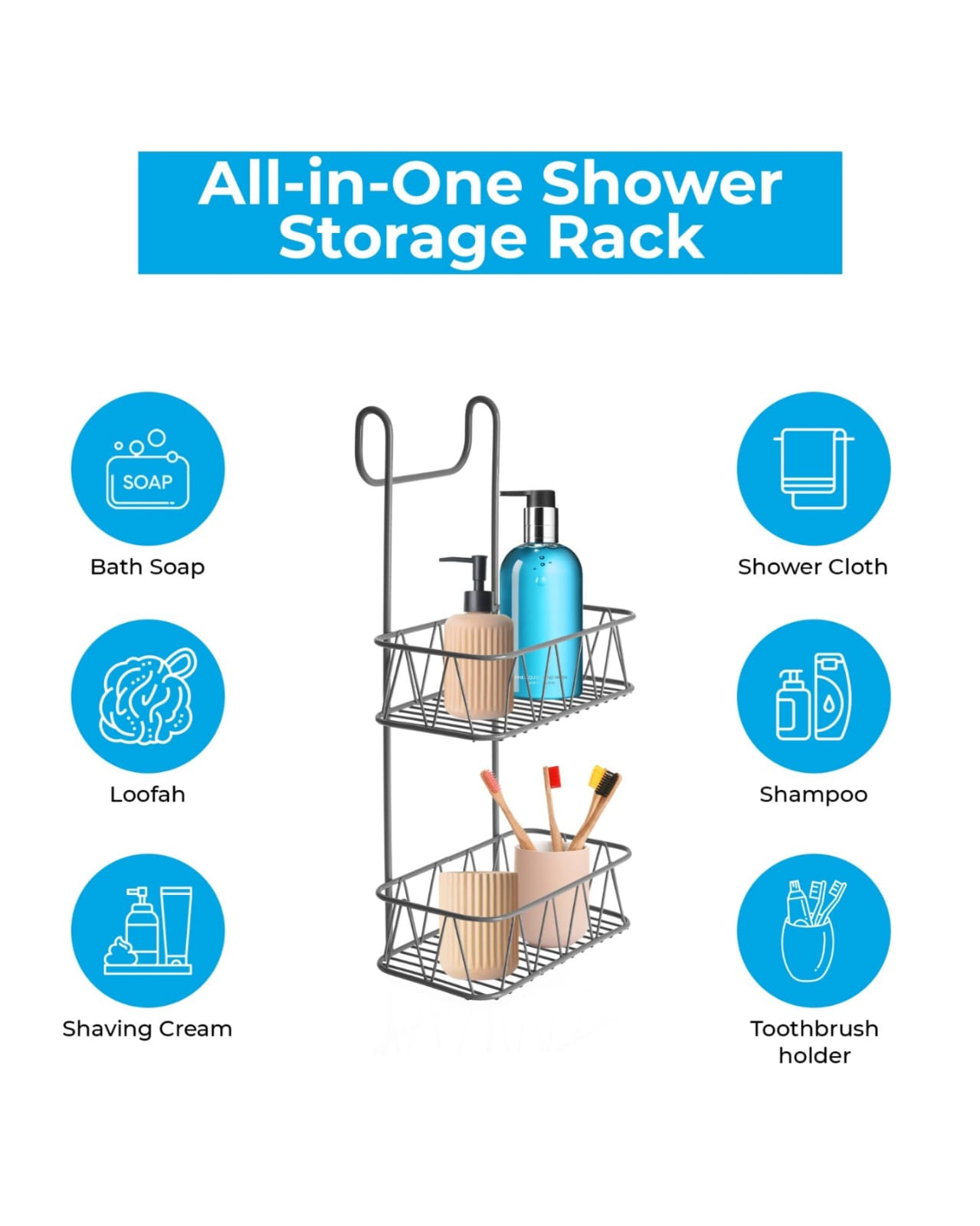 - Efficient Organization:Keeps your shampoo, conditioner, soap, and other essentials neatly arranged.